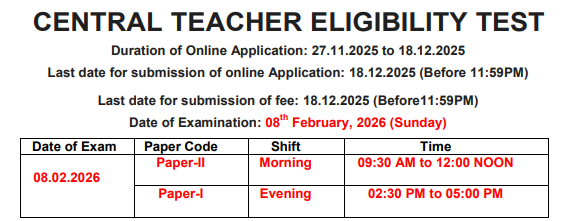 Important Information :- CTET Notification 2025 : The Central Board of Secondary Education (CBSE), New Delhi is Informed or Notify you that Application have been sought for Central Teacher Eligibility Test (CTET) Examination in all over India. The Application Starting Date for all Eligible Candidates is 27 November 2025. The last date for submission of CTET applications is 18 December 2025. Information Related to this Bharti/Recruitment is Given Below.