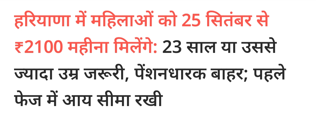 हरियाणा के बीजेपी सरकार के द्वारा हरियाणा की महिलाओं को ₹2100 हर महीने देने का एलान विधानसभा चुनाव के दौरान संकल्प पत्र में किया था। अब विधानसभा चुनाव के बाद बीजेपी सरकार को पूर्ण बहुमत मिलने के बाद इस संकल्प को पूरा करने का ऐलान मुख्यमंत्री नायब सैनी ने कर दिया है।