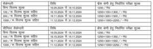 - For Senior Secondary (12th) : Rs. 1250/- for Theory, Rs. 100/- for Practical (Rs. 200/- for Additional Subject & Rs. 50/- for Migration Fee If applicable)