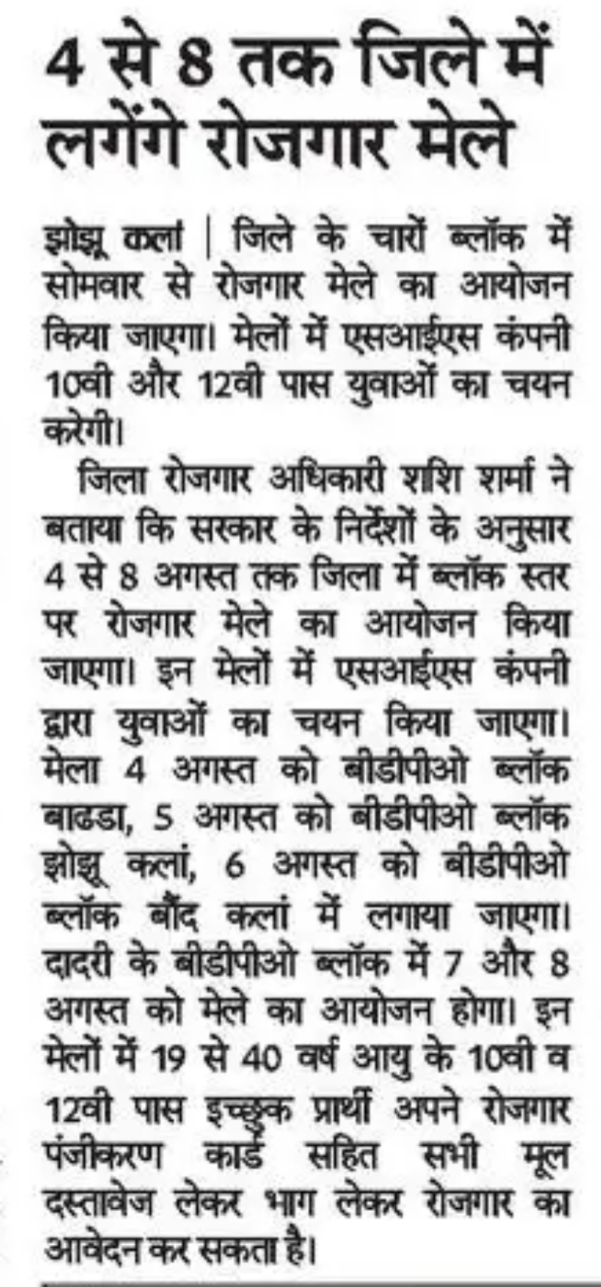 | BDPO OFFICE CHARKHI DADRI | 07-08 August 2025 |