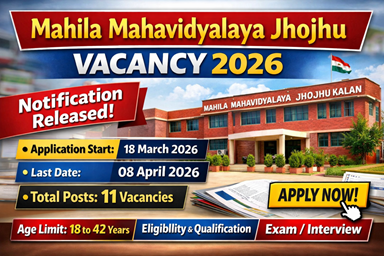 Important Information :- Mahila Mahavidyalaya Jhojhu Vacancy 2026 : Mahila Mahavidyalaya College Jhojhu Kalan, Charkhi Dadri is Informed or Notify you that Application have been sought for various category posts under Contract Basis. The Application Starting Date for all Eligible Candidates is 18 March 2026. The last date for submission of various Vacancy applications is 08 April 2026. Information Related to this Bharti/Recruitment is Given Below.