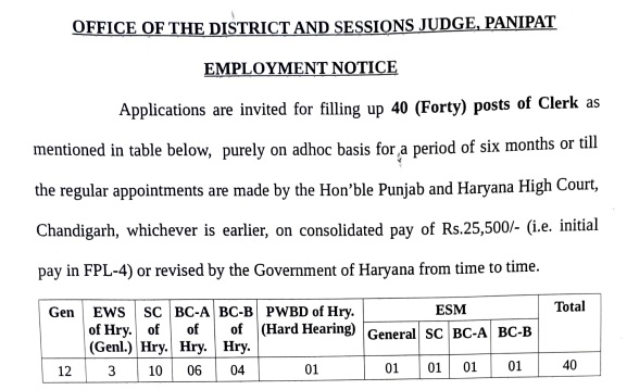 Important Information :- Panipat District Court Recruitment : District And Sessions Judge, Panipat is Informed or Notify you that Application have been sought for 40 Clerk post under Contract/Adhoc Basis in 2025. The Application Starting Date for all Eligible Candidates is 09 July 2025. The last date for submission of Court Vacancy applications is 31 July 2025. Information Related to this Bharti/Recruitment is Given Below.