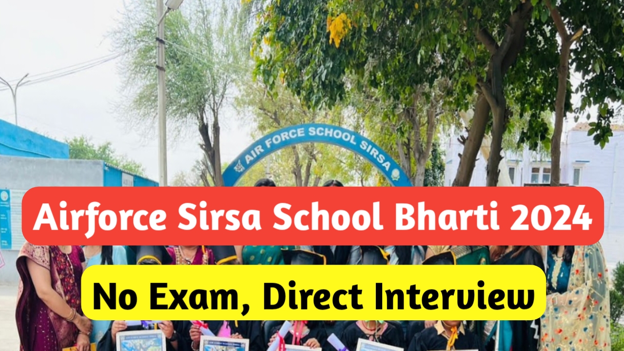 Important Information :- Airforce Sirsa School Vacancy : The Air-force School Sirsa, Haryana is Informed you that Application have been sought for the selection of PRT & NTT, NTT Music categories on Contract Basis. The Application Starting Date for this vacancy is 27 March 2025. The Last Date for this vacancy is 10 April 2025. As Per Notification of this vacancy, Candidates must be Checked all Essential & Important Information like as Eligibility, Qualification, Age Limit, Fees, Syllabus, Pervious Year Papers (PYP), Exam Date, Admit Card, Result, Final Merit List etc. All Related Information is Available on this Website or Official Website of Recruitment Organization. Airforce Sirsa School Vacancy