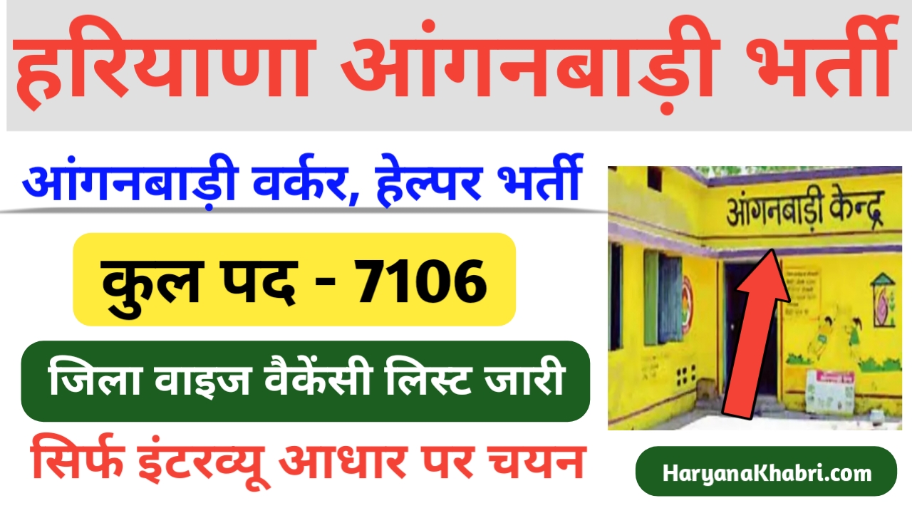 महिला एवं बाल विकास निदेशालय, हरियाणा आपको सूचित करता है कि हरियाणा के सभी जिलों के विभिन्न गांवों में अनुबंध/नियमित आधार पर 2549 आंगनवाड़ी कार्यकर्ता और 4439 हेल्पर, 118 आंगनवाड़ी पर्यवेक्षक पदों सहित 7106 पदों के लिए आवेदन मांगे गए हैं। सभी पात्र उम्मीदवारों के लिए आवेदन शुरू होने की तिथि …………. 2025 है। रिक्ति आवेदन जमा करने की अंतिम तिथि का उल्लेख नहीं किया गया है। इस भर्ती से संबंधित जानकारी नीचे दी गई है।