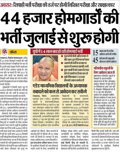 Complete information related to this bharti is available on the haryanakhabri.com Other more Information Like age limit, eligibility, selection procedure and other information are mention in this article. UP Home Guard Vacancy 2025